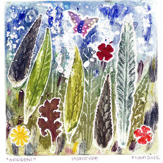A solo exhibition by Fiona Mouzakitis celebrating the beauty and tranquility found in Gardens, through a series of monotypes, small paintings, and plaster of paris relief prints.